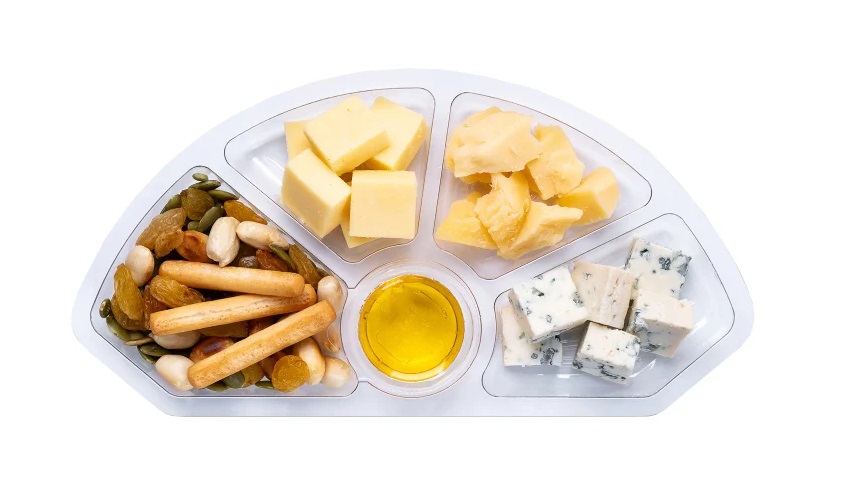 Сыр Блю с голубой плесенью: пастеризованное коровье молоко, пищевая соль, плесневые грибы, микробиологический молокосвертывающий фермент, мезофильныемолочнокислые бактерии, Сыр Пармезан: пастеризованное молоко с использованием мезофильных и термофильных молочнокислых микрооранизмов, фементный препарат животного происхождения, соль поваренная пищевая, пищевой краситель аннато, Сыр Гауда: Молоко коровье пастеризованное, молокосвертывающий ферментный препарат микробного происхождения, соль поваренная мед цветочный натуральный, гриссини (пшеничная мука хлебопекарная высшего сорта, растительное масло, дрожжи хлебопекарные, сахар, соль, солод), ядро арахиса, тыквенные семечки, изюм.