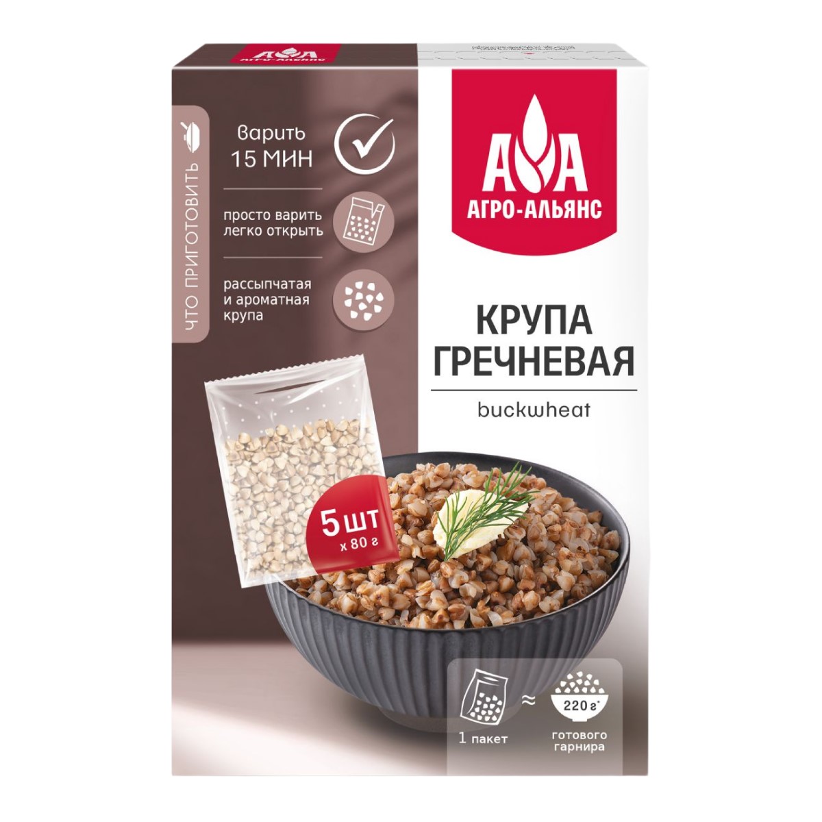 Гречневая элитная крупа «Агро-Альянс» (варочные пакеты 80гр.*5шт.) 400 гр.