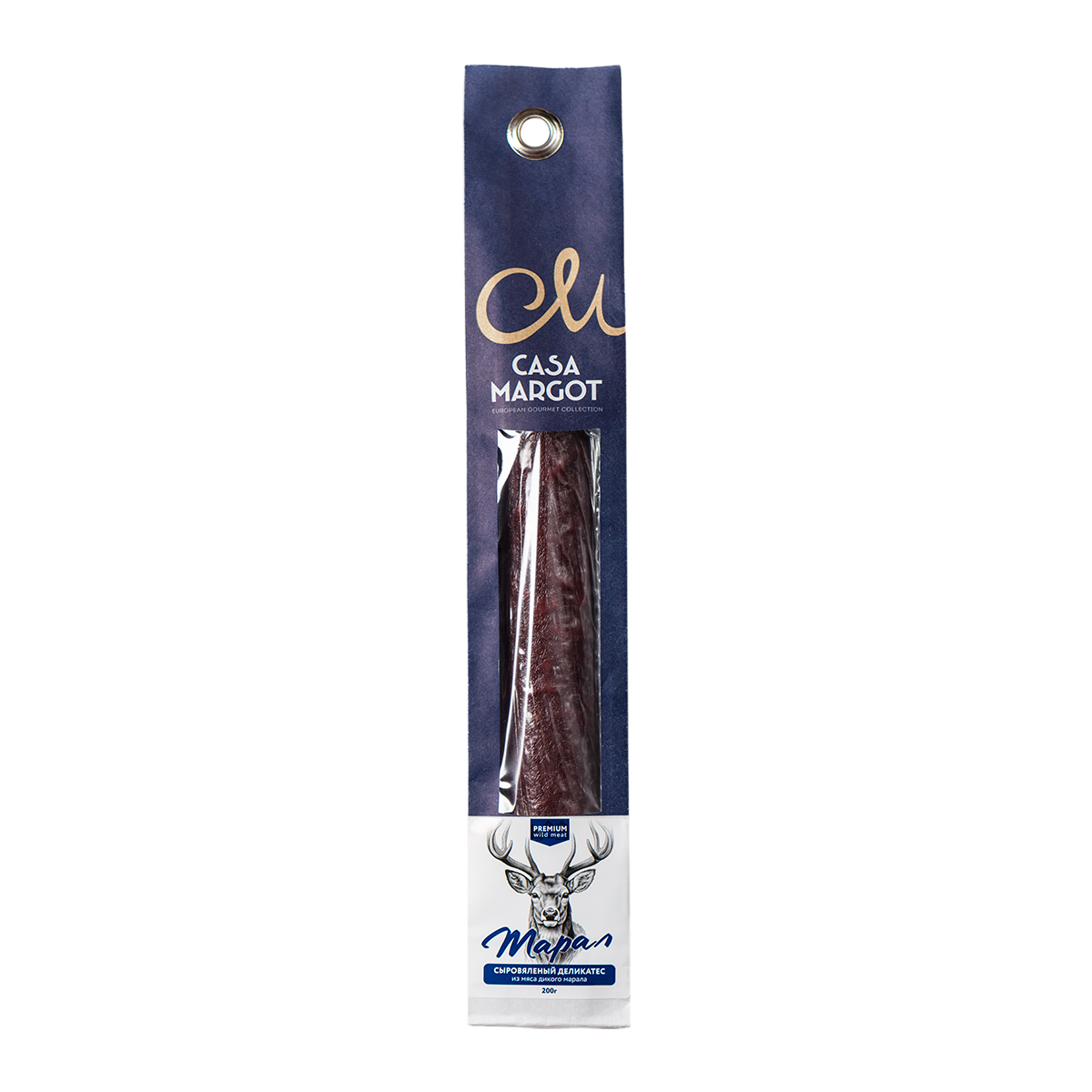 Сыровяленая колбаса достойно украсит ваш стол и порадует гурманов. Мясо дикого марала славится своим нежным вкусом и низкокалорийным составом. И оно существенно отличается от другого мяса. Яркий вкус, отсутствие добавок – все эти преимущества делают её настоящим деликатесом.