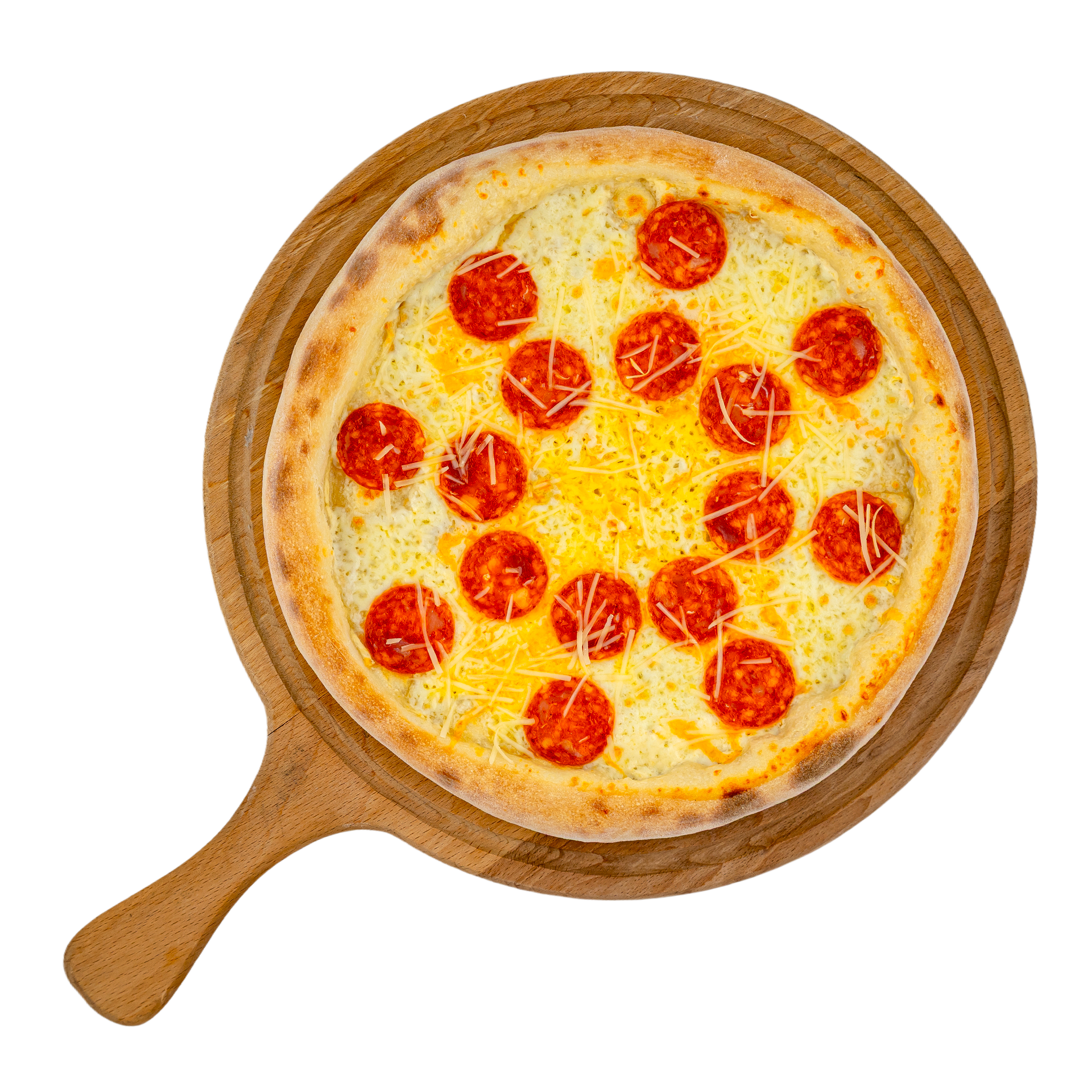 Пицца на тонком тесте «Чоризо Дабл-Чиз» сочетает щедрую, тянущуюся моцареллу и тонкие кружки пряной чоризо, запечённые до румяного края.