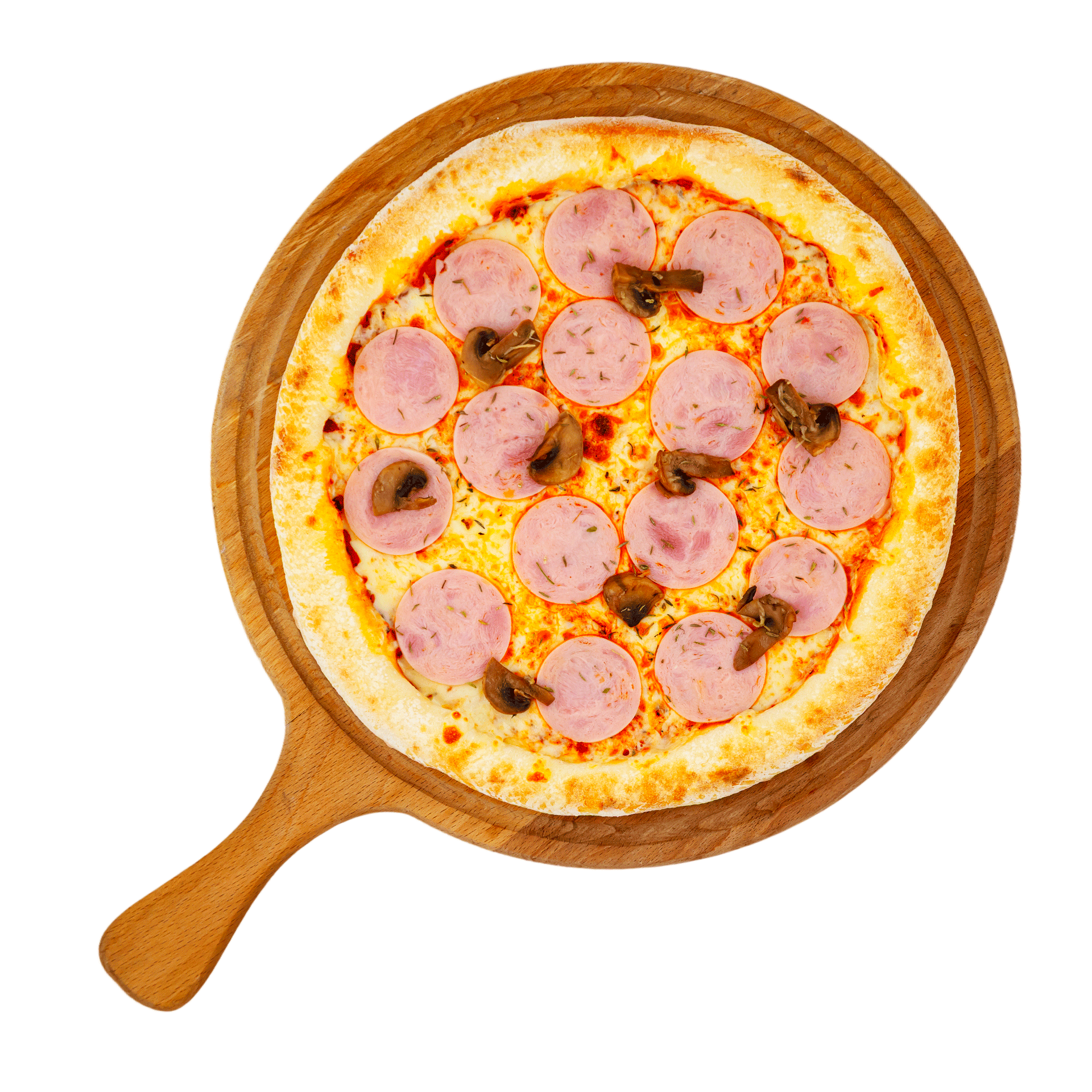 Пицца «Ветчина грибы» - вкуснейшая пицца собственного производства! ⌀ 30 см. вес ~550 гр.